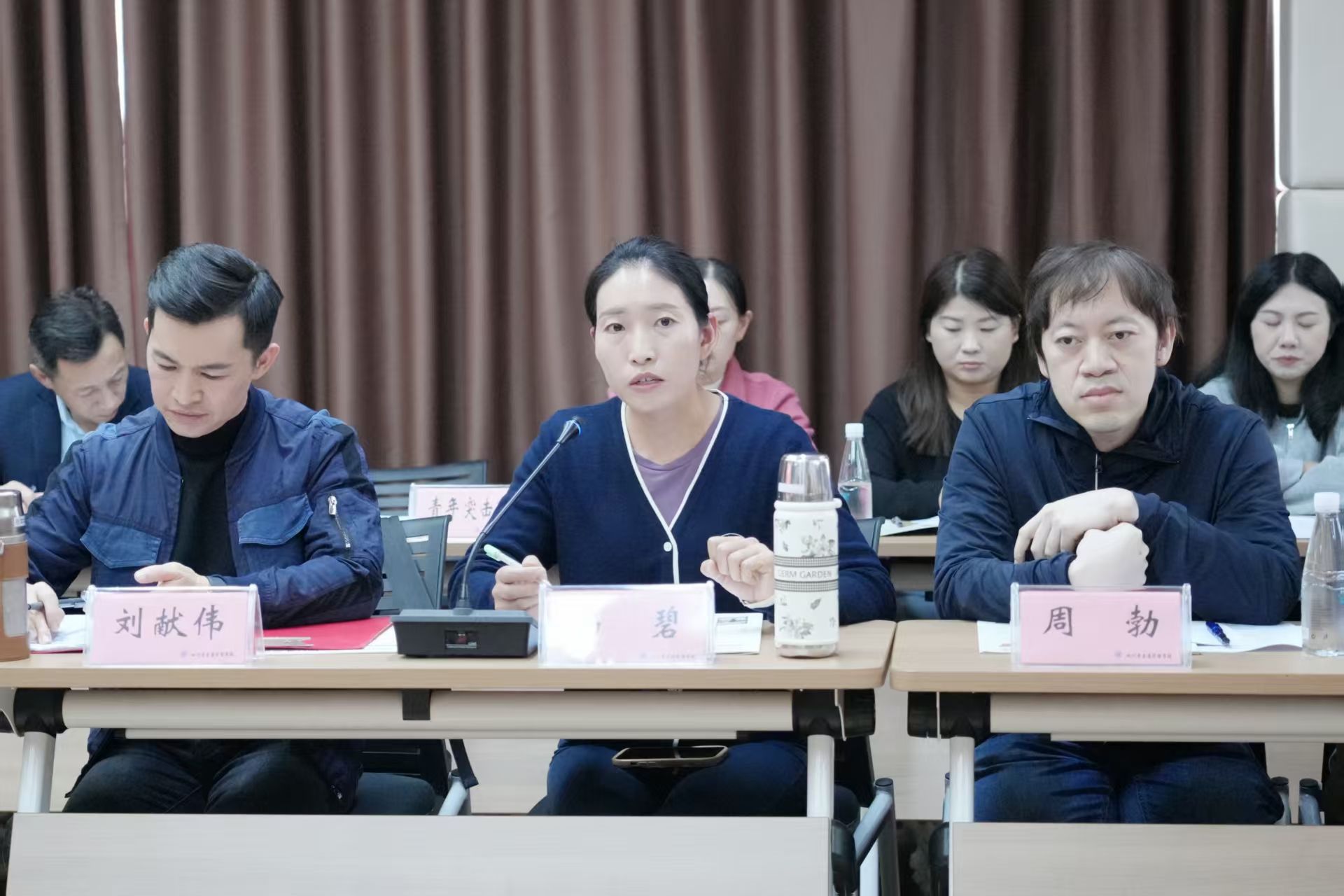 声乐教研室组长刘献伟、瑜伽教师杨碧、古筝教师周勃,班主任鄢小红、张文玉,学委会委员吕慧琴、何宾等先后发言,表达了对学校、对工作人员的感谢,也对学校取得的成绩给予肯定,自豪感、幸福感溢于言表。他们还就课程优化、学员服务、招生宣传、校园环境改善等提出务实建议。