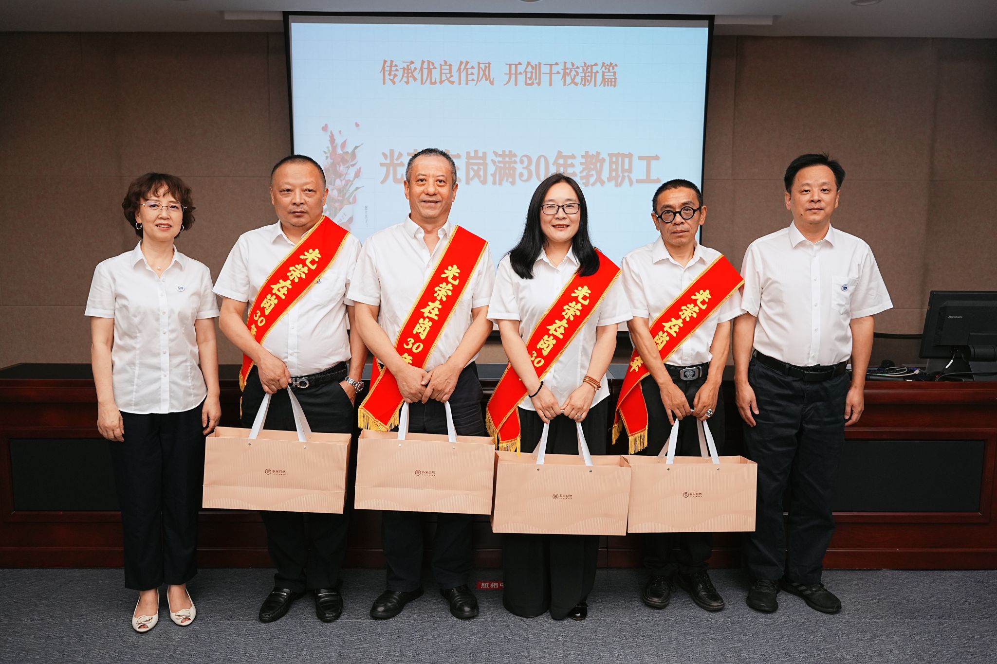 学校领导班子、中层干部、2025年退休教职工、在岗满30年教职工、2024年度先进工作者和2025年新入职教职工等60余人参加座谈会。