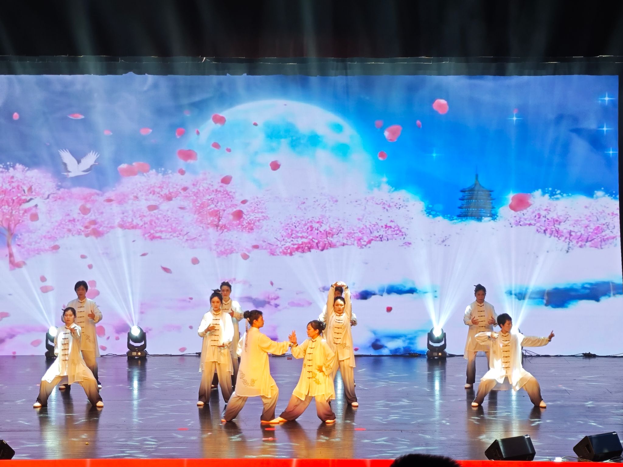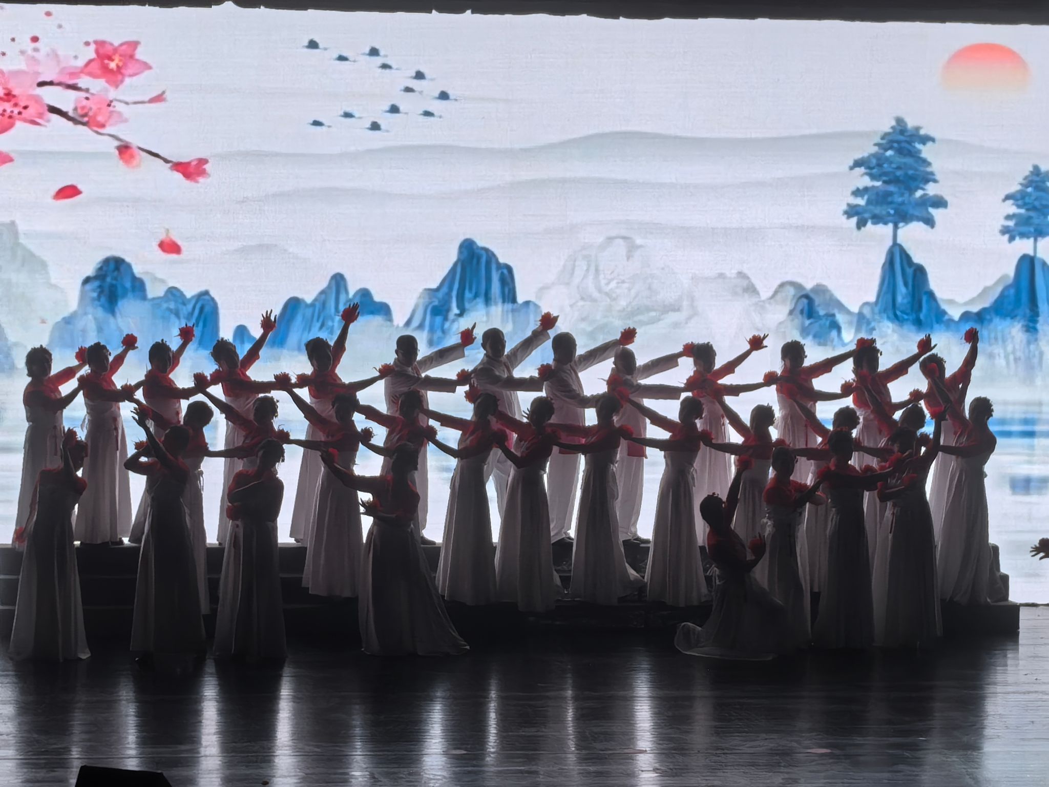 下半场在学期回顾视频的温馨片段后接力开启。走秀《再现芳华》的学员们步态从容,优雅与自信并存;太极拳《江山如画—太极韵》刚柔并济,诠释了中华传统文化的博大精深;教师独唱《我和我的祖国》深情款款,表达了深厚的家国情怀;羌族舞蹈《云上》风格独特,宛如将观众带至辽阔的高原;古风当代舞《你的眼神》大胆创新,融合古今;表演唱《梅花赋》清新雅致,令人回味。展演在全场大合唱《歌唱祖国》的激昂歌声中达到高潮,全体演职人员与观众齐声高歌,用最真挚的情感表达对祖国的热爱与祝福,为此次教学成果展演画上了圆满的句号。