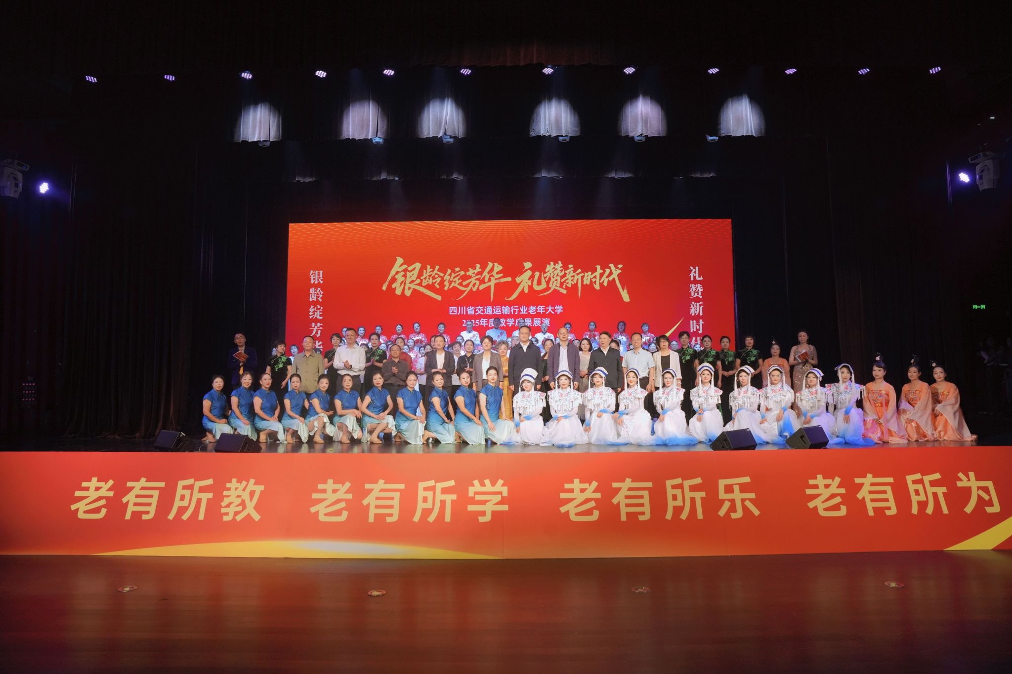 2025年10月14日,紧随四川省交通运输老年协会成立大会,“银龄绽芳华 礼赞新时代”——四川省交通运输行业老年大学2025年度教学成果展演在成都中国—欧洲中心云端剧场华彩登场。交通老年大学200余名演职人员为大会呈现了一台节目丰富、高潮迭起的高质量视听盛宴,生动展现了老交通人“老年所教、老有所学、老有所乐、老有所为”的积极风貌和丰硕的学习成果。