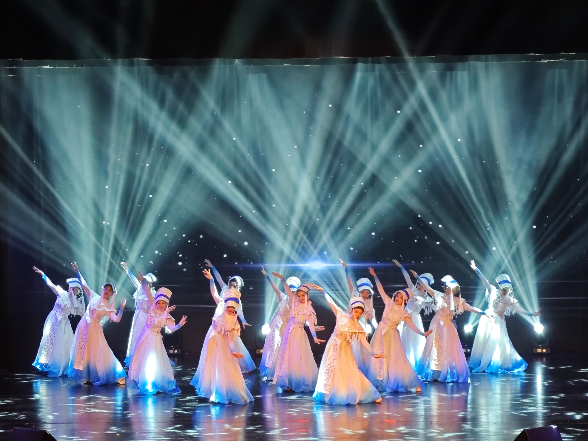 展演在典雅温馨的暖场节目《礼韵东方》古筝演奏与茶艺展示中拉开序幕。中华茶文化与养生班和古筝班的学员联袂奉献了《乌龙茶艺展示-高香雅韵》与《渔舟唱晚》,茶香与乐韵巧妙交融,瞬间让观众感受到浓厚的传统文化氛围。上半场的演出节奏明快,形式多样。非洲鼓合奏《战马》以铿锵激昂的节奏点燃全场;表演唱《虞兮叹》韵味悠长,引人入胜;大合唱《世界赠予我的》和声优美,情感真挚;藏族舞《在那东山顶上》舞姿曼妙,尽显民族风情;半音阶口琴合奏《北京喜讯到边寨》旋律欢快,传递喜悦;古典舞《玉人舞》则以其飘逸的身姿,展现了古典艺术的独特魅力。