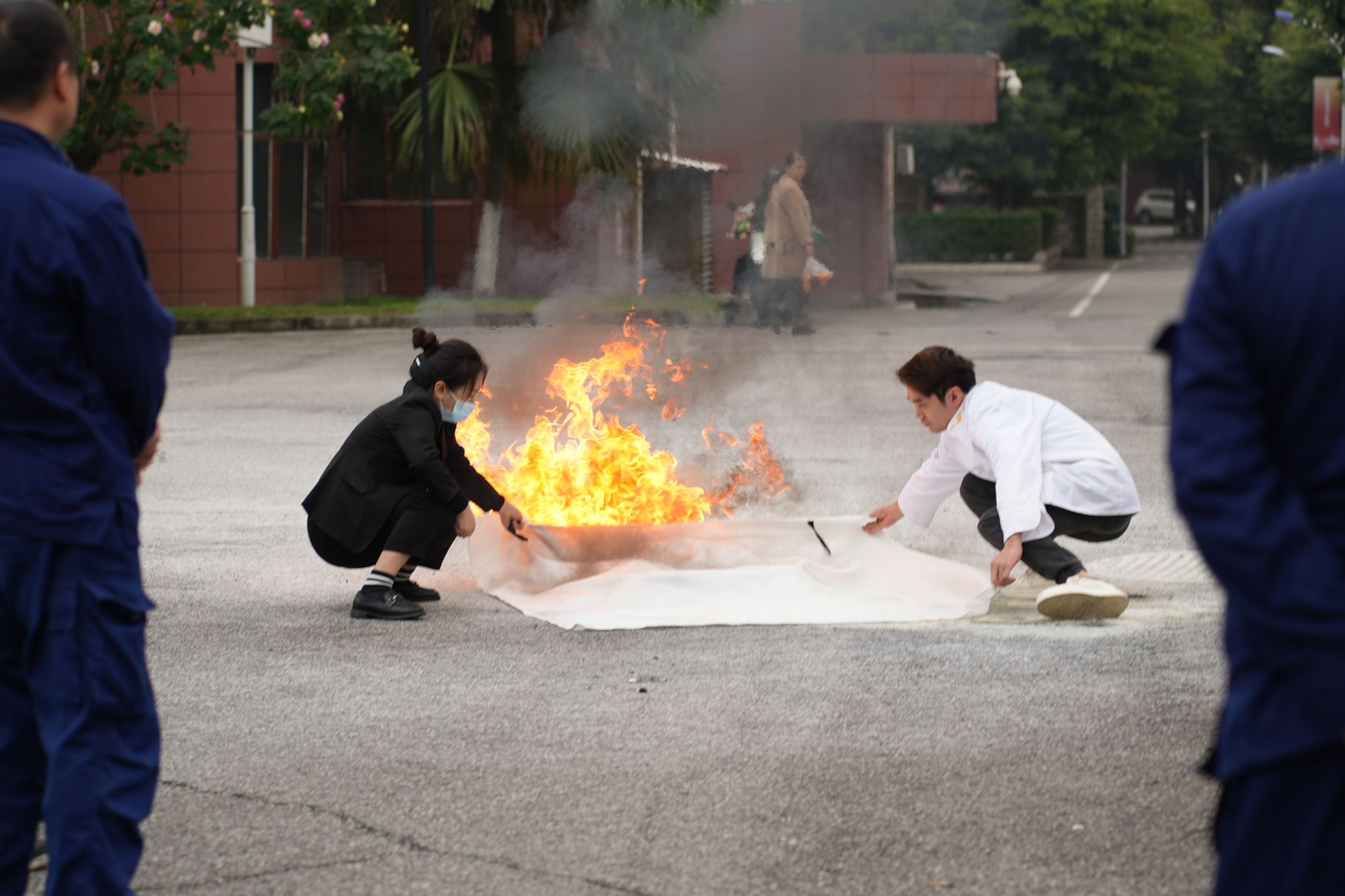 在119全国消防安全日来临之际,为进一步加强学校多部门协同联动、高效处置突发火灾事故的能力,提高全员消防安全意识和自救互救能力,学校后勤保障服务部牵头携手红牌楼政府专职消防救援队,以“全民消防,生命至上”为主题,于2025年11月5日,在银辉楼和初心广场成功举办消防应急疏散与灭火实战演练。